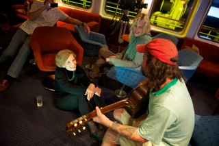 The other night after dinner,  a small group of guests wanting to linger came upstairs to the lounge on-board. Out came a couple of guitars from our film and local boat crews.