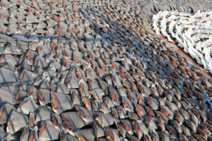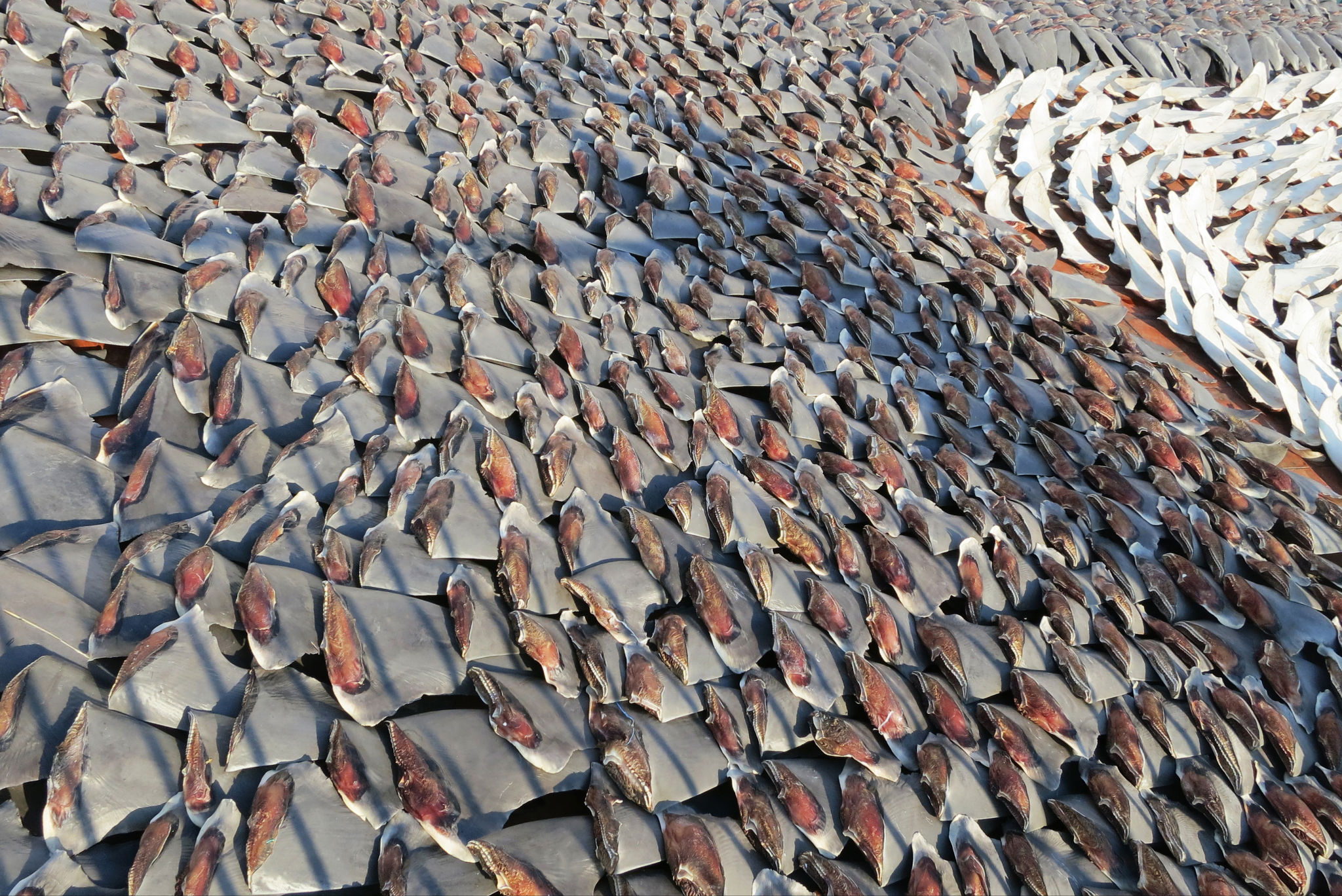 Previously set out to dry along city streets, negative public opinion about the shark fin trade forced traders to relocate to the more discreet location of rooftops.