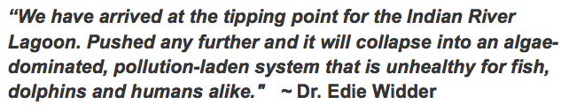 Tragically this once flourishing ecosystem has hit a brick wall in the past few years. Over 40,000 acres of seagrass meadows have vanished since 2010. Dependent on the seagrass, manatees, dolphins and pelicans are now dying at an unprecedented rate, as well as other key species. Unlike other environmental disasters, where we can point to oil spills or overfishing, the Indian River Lagoon presents an enigma: there is no specific industry to blame. At best, we can surmise that damaging pollution from non-point sources — storm water runoff, sewage spills, leaky septic tanks, fertilizers, pesticides and more.