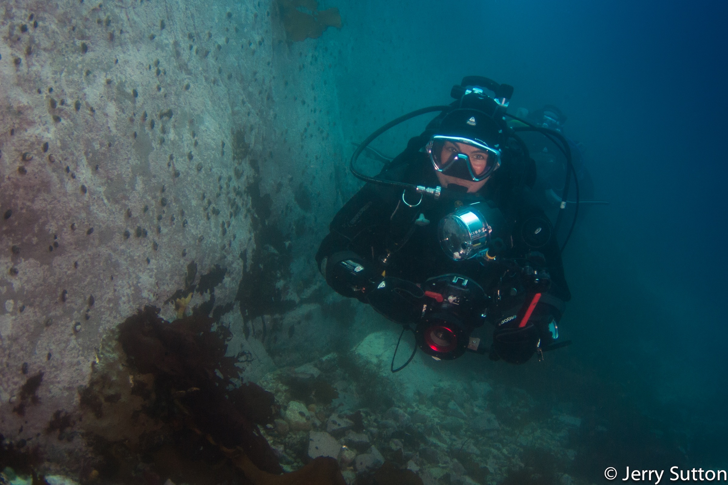 So how do you go about diving from an 89m vessel like the M/V Plancius? Surely back-rolling 3m from the ship’s gangway would not be an ideal entry! Instead Oceanwide Expeditions uses a much more sensible method – small zodiacs which take divers straight to their diving locations. On the day of my first dive, the diving area was a flurry of activity with everyone helping each other out to get their equipment organized. Once at the site, we reviewed the procedures for free flowing regulators, did our buddy checks and prepared mentally for the agony that was about to befall our bare skin.