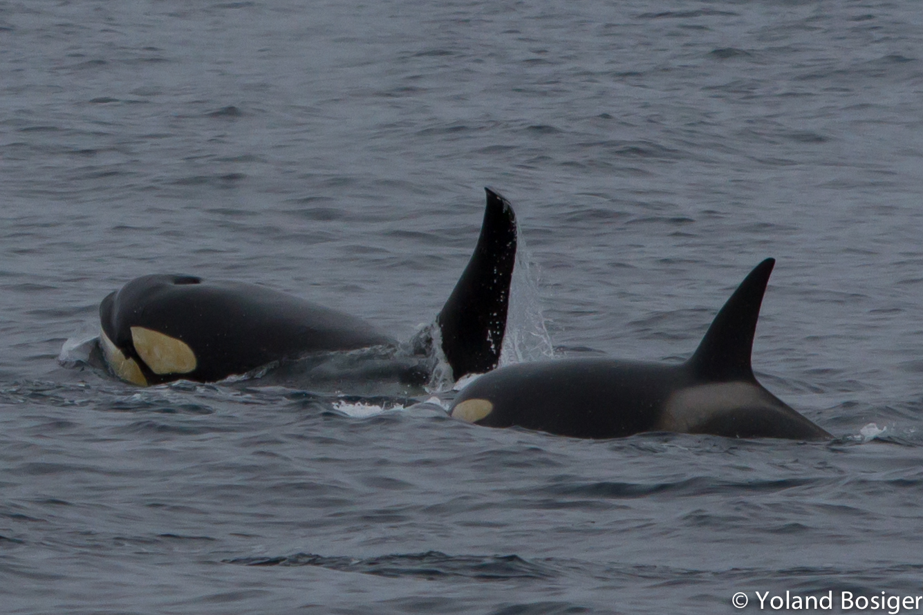 On our way north, Kelvin and the crew spotted the distinctive black and white markings and tall dorsal fins of a pod of orcas hunting. Like wild dogs of the Kalahari, these magnificently powerful and intelligent animals use teamwork to overcome their prey, in this case an incredibly rare Arnoux’s beaked whale. Known to dive over 1000 m, the Arnoux’s beaked whale is so seldom seen on the surface that they remain largely a mystery to science.