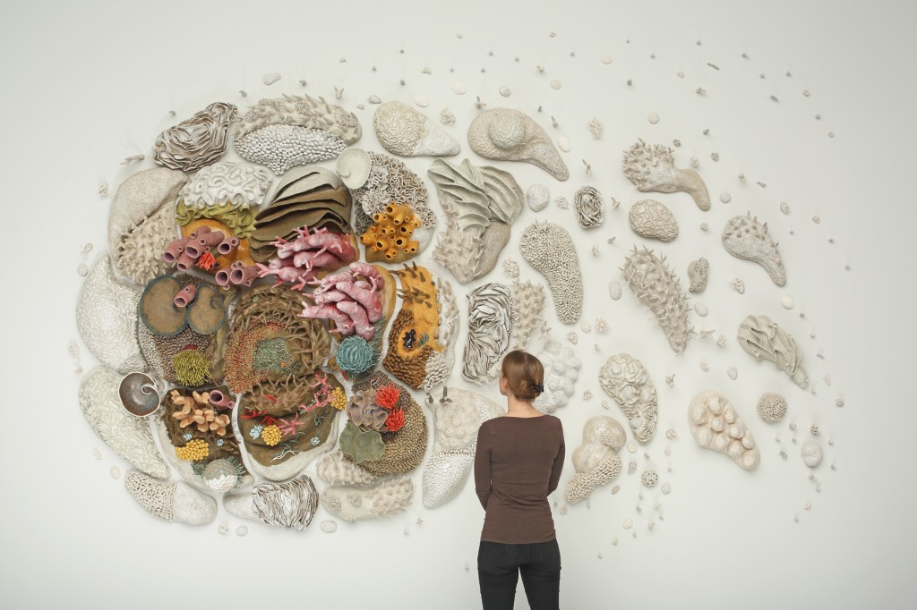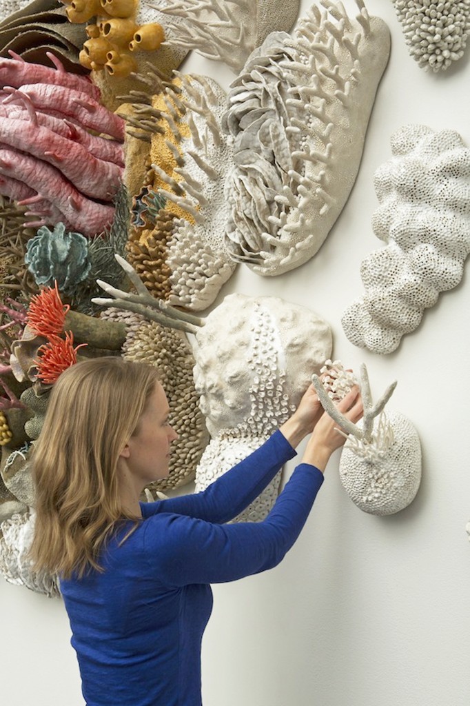 Are coral reefs doomed to fade into oblivion or will we allow them to recover and regain their vibrancy? We won’t act unless we care, and we won’t care if we don’t know. We especially won’t care if we are unaware of the vast resources and inherent value of reefs that make them important to us. I hope that the idea of one small person creating such huge, intricately detailed ceramic sculptural installations causes viewers to realize just how important reefs are to me, and to become curious enough to learn more about how the ocean is important to them. As an “artivist” (artist + activist), I sincerely hope that I am not building memorials to reefs for a future without them, but rather celebrations of their enduring yet fragile beauty.