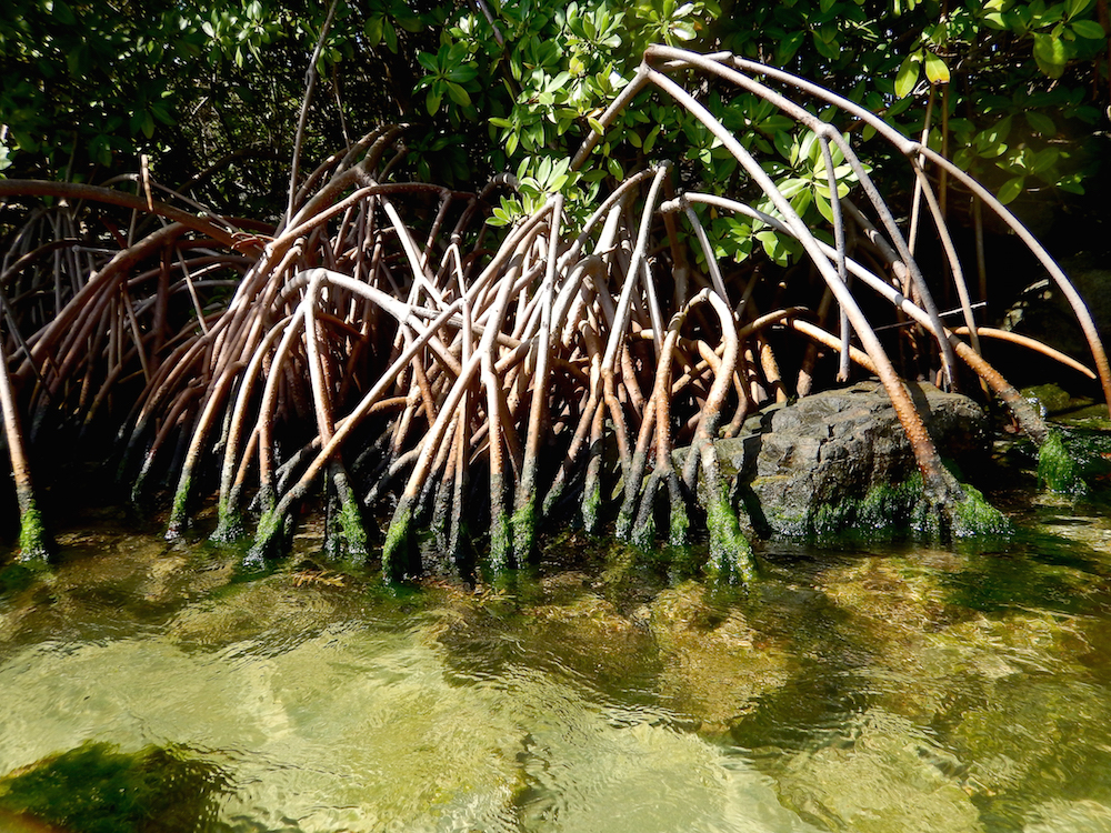 Mangrove roots provide shelter for juvenile fish and prevent sediment from smothering nearby corals. Photo © Richard Gillette