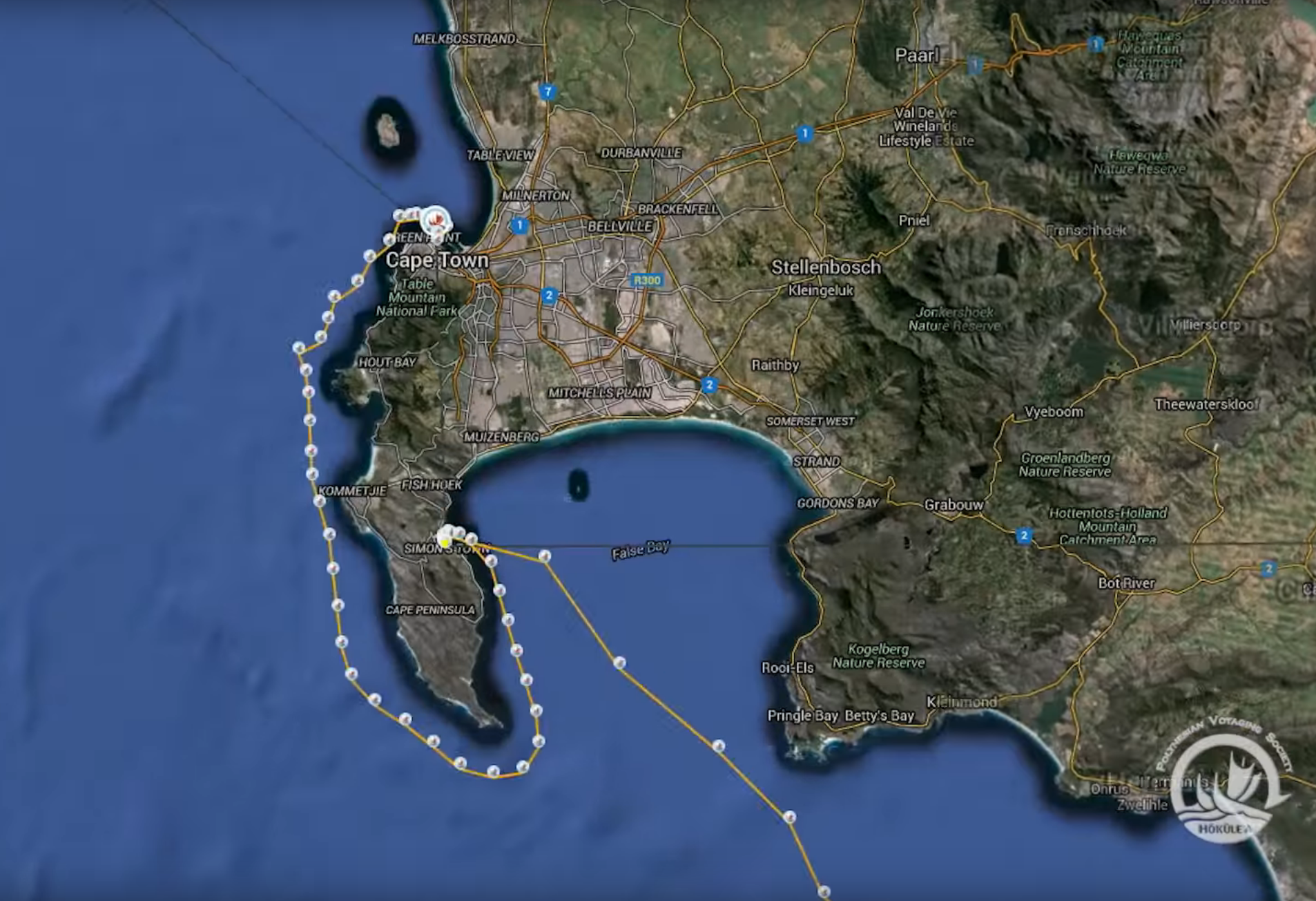 Hōkūleʻa, the incredible wind-powered circumnavigation conducted by Mission Blue partner Pacific Voyaging Society, has recently reached the shores of South Africa, halfway around the world from her home in Hawaiʻi. On November 10th, the sailing canoe pulled into False Bay, a Mission Blue Hope Spot, after having rounded the southernmost point of Africa. Ranging from Cape Point to Cape Hangklip near Cape Town, South Africa, False Bay is an area of dense kelp forests. Part of the False Bay Hope Spot is reserved as a marine protected area and no take zone, creating a sanctuary for large reef fish, abalone and small sharks. Fishing pressure in unprotected parts of False Bay is significant and pollution is also an issue in the area. Rich in biodiversity, False Bay also supports a vibrant tourism economy with a wealth of cultural and social history.