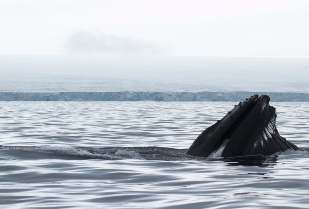 A humpback whale surfaces in front of the Austfonna Ice Cap in Svalbard, Norway. Kt Miller/Polar Bears International
