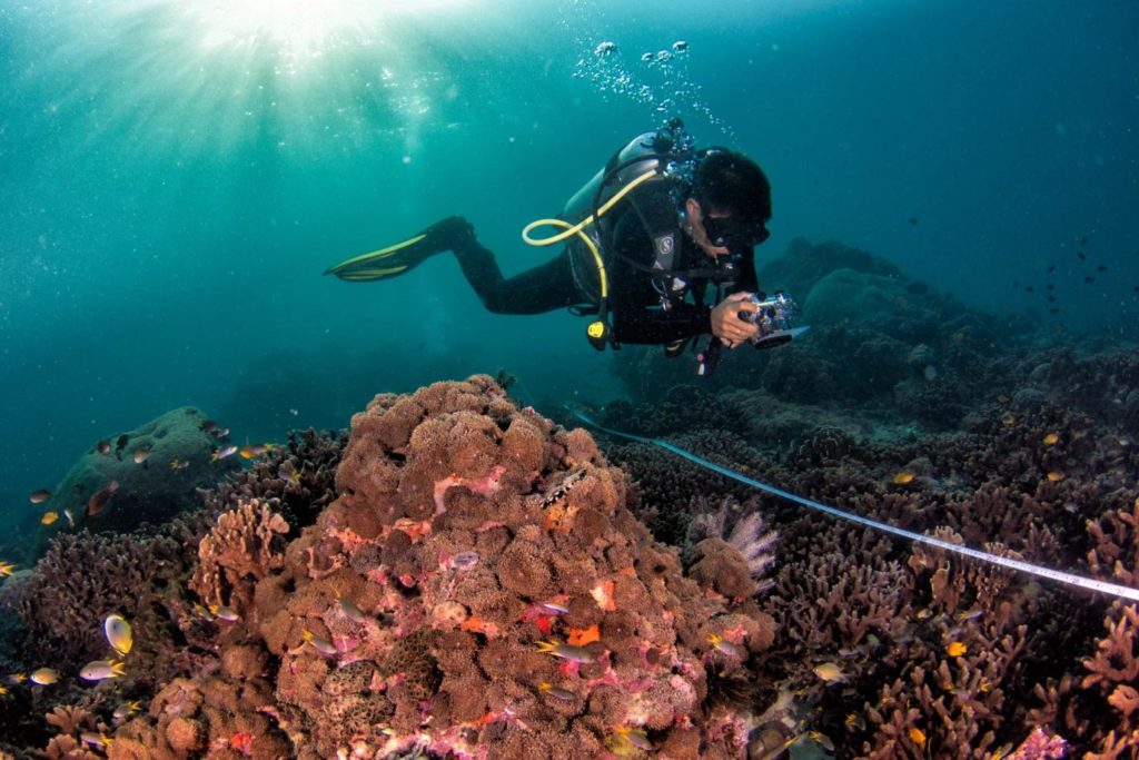 FFI research diver surveying coral reefs. Michelangelo Pignani/FFI.