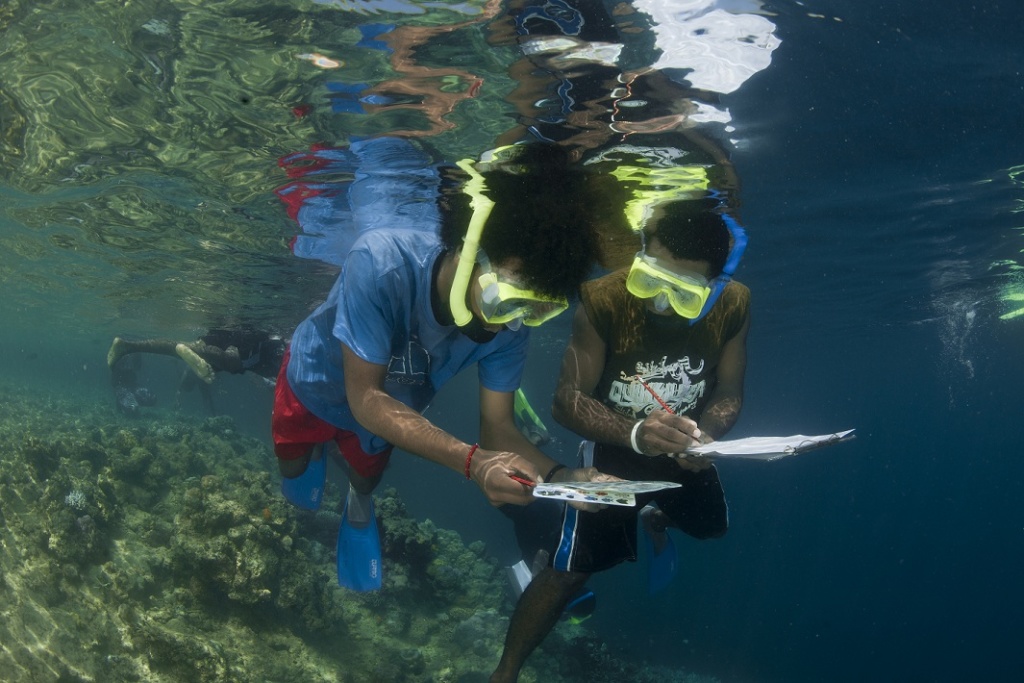 Students in the Marine Environment Education Program (MEEP) collecting data on the Bay’s reefs