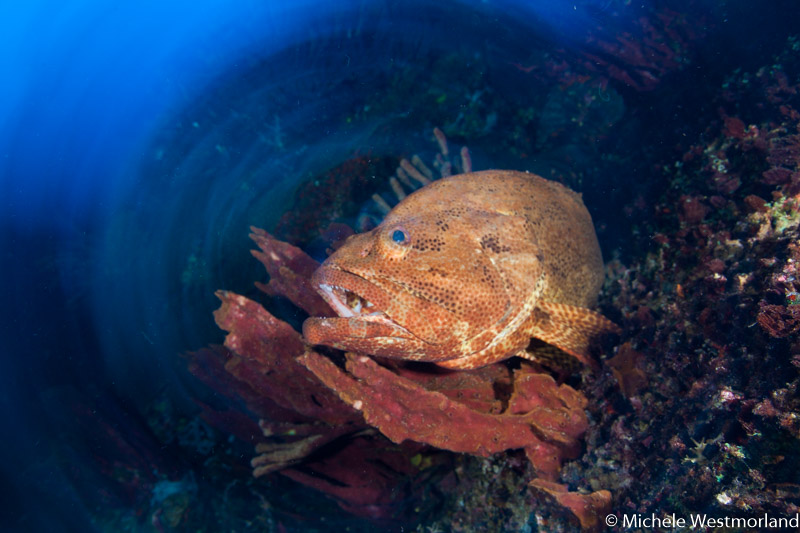 Large grouper (Epinephelus sp) resting on sponge. Kimbe Bay, Papua New Guinea