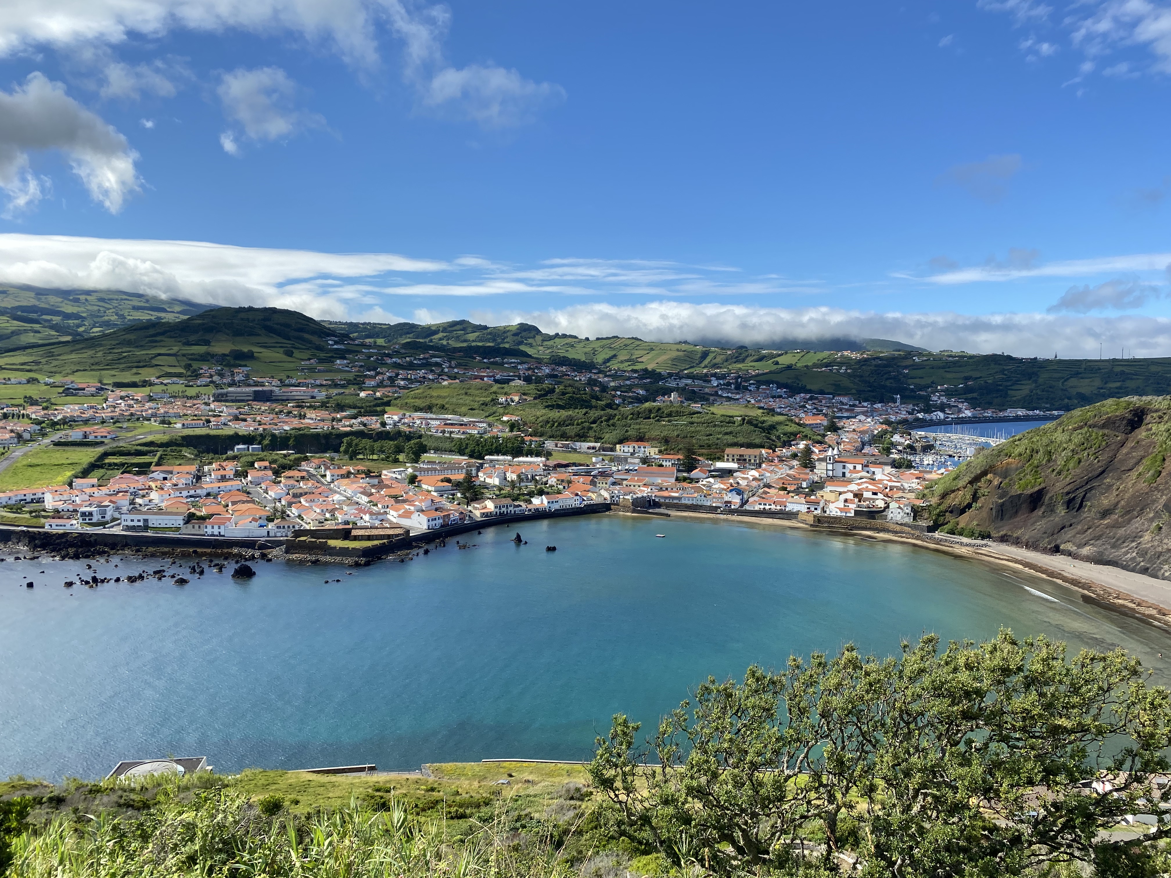 When I told friends I would be away for a work trip to the Azores, most responded with “where is that?” The Azores, a chain of small islands halfway between New York and Portugal, known mostly to Europeans, thankfully still hold that small island charm. While tourism is a major sector of their economy, the islands haven’t been overrun with unsustainable tourism. This was apparent as we landed on Faial Island, looking out the window I noticed the many cows grazing on the green grass above the runway. The island is strikingly green, with various grasses and crops growing abundantly. Each plot is separated by hedges or stone walls. The vineyards in the Azores grow between short walls made of volcanic rock. The black rock absorbs the heat from the sun and radiates it, creating its own microclimate.