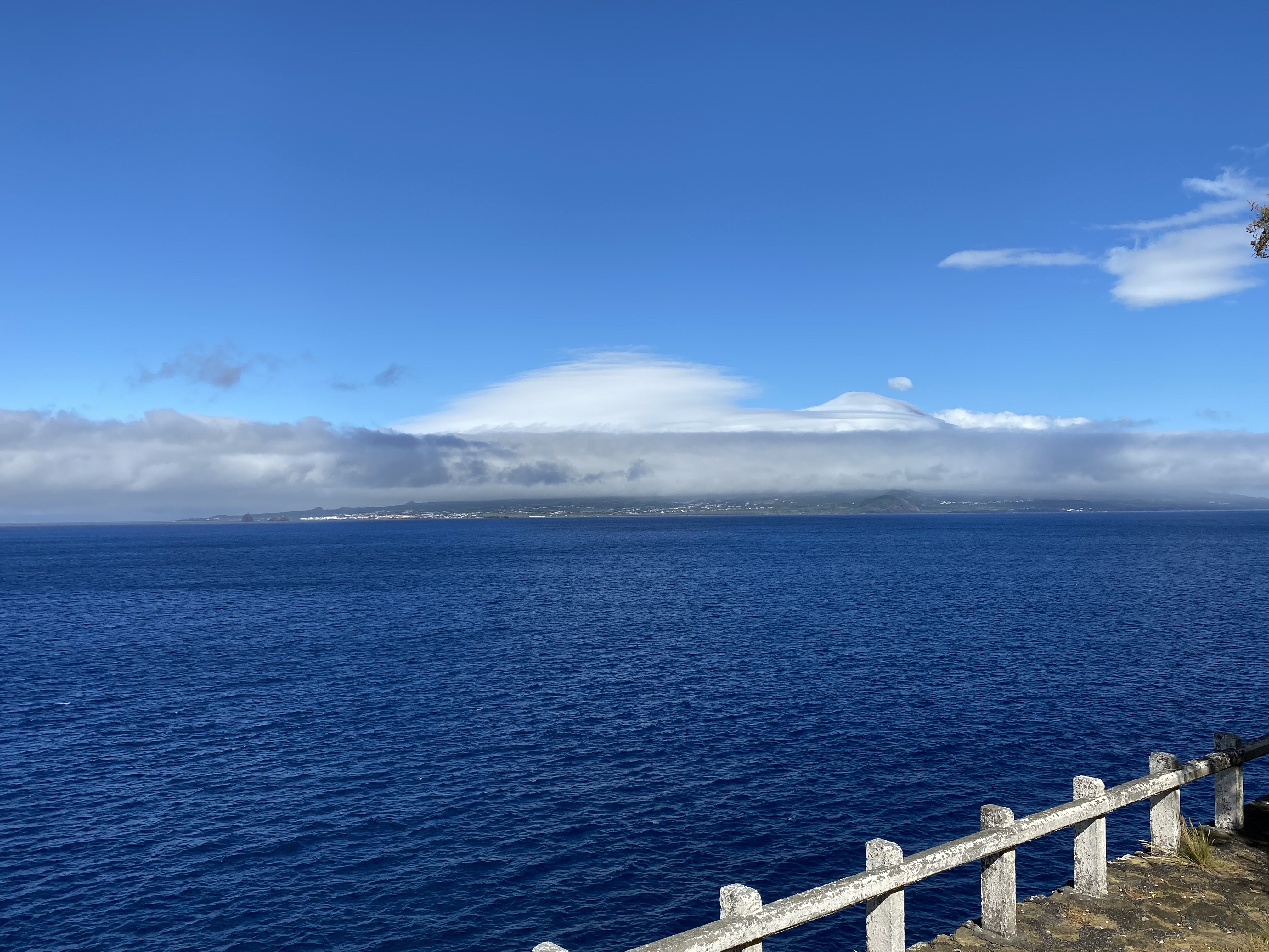Approximately four miles from the main island of Faial, sits Pico Island. It’s known for producing delicious white wine and of course the rich marine life that surrounds it. Looking across the ocean from Faial, I gazed upon the beautiful cloud formation resembling a soft serve ice cream cone that gently wrapped around the upper half of Pico island. I was excited to be here in the Azores with Dr. Sylvia Earle, for the Azores Hope Spot Summit.