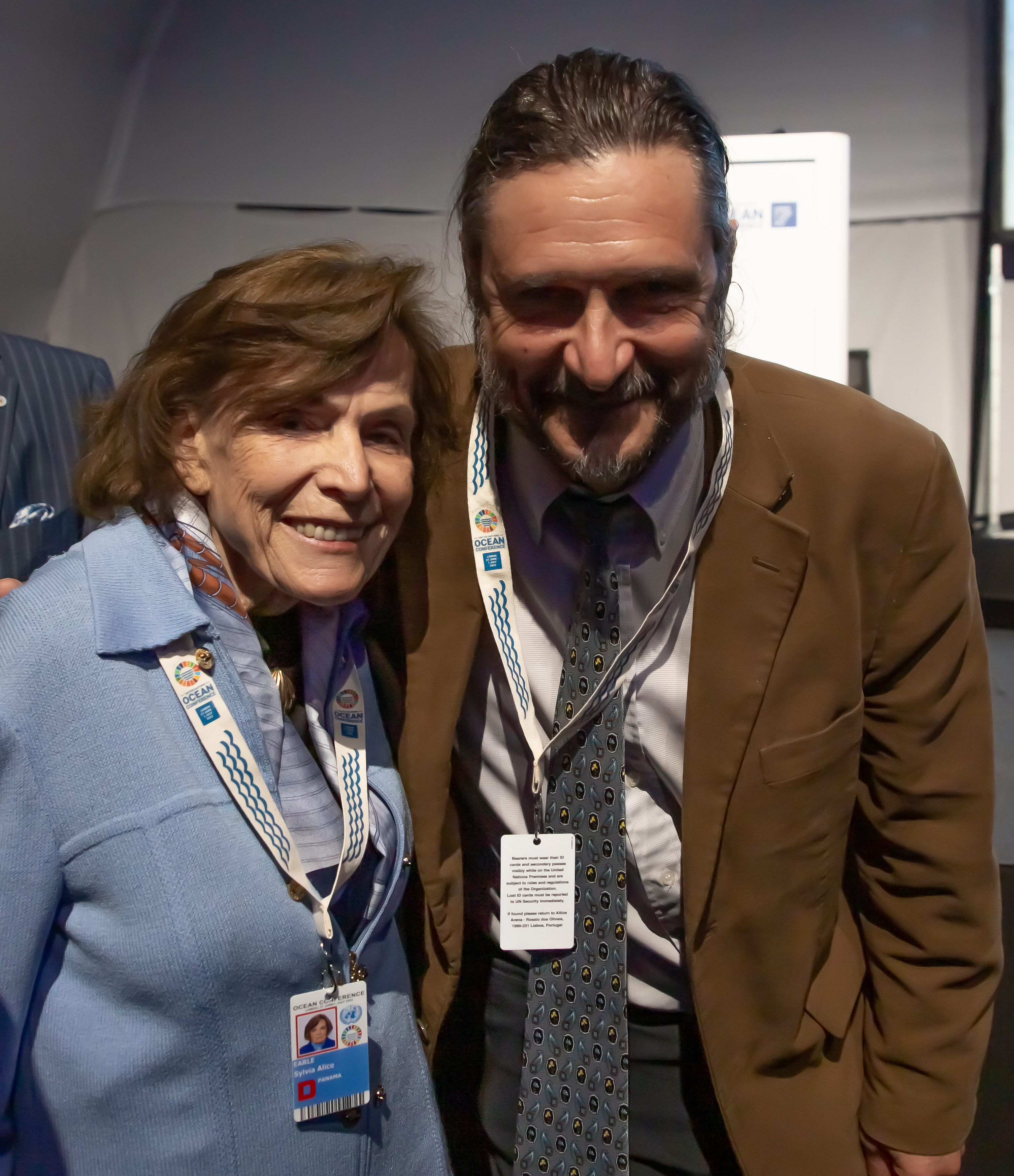 Dr. Sylvia Earle (left), Founder of Mission Blue with Rodrigo Garcia Pingaro at the 2022 UN Ocean Conference in Lisbon, Portugal on June 27th, 2022 (c) Avrah Sellar (Baum), Mission Blue
