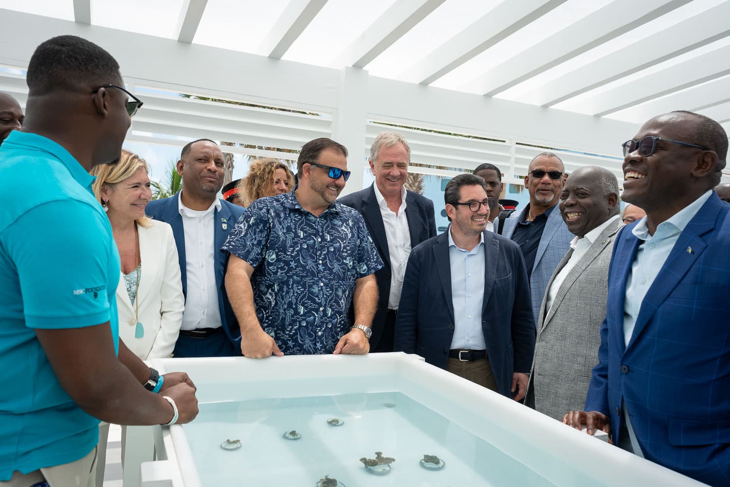 The Marine Conservation Center was officially opened this morning by the Chair of the MSC Foundation Executive Committee and Executive Chairman of the Cruise Division of MSC Group, Pierfrancesco Vago, with Diego Aponte, MSC Foundation Board Member and MSC Group President, Rick Sasso, MSC Foundation Ambassador and Chairman MSC Cruises (USA) and MSC Foundation Executive Director Daniela Picco, together with the Prime Minister of The Bahamas, the Honourable Philip Davis, the Deputy Prime Minister, Honourable I. Chester Cooper and renowned marine biologist Dr Sylvia Earle.