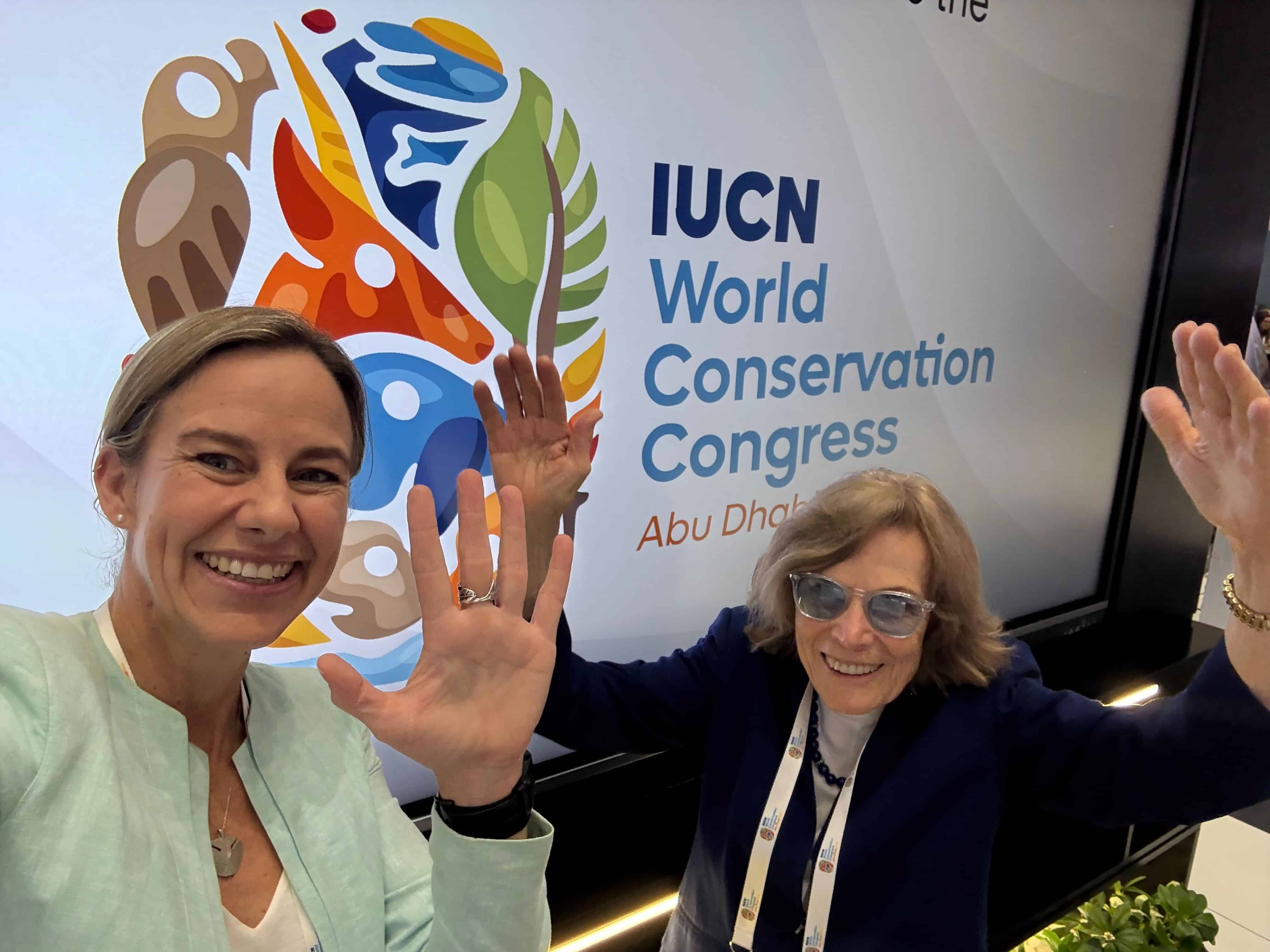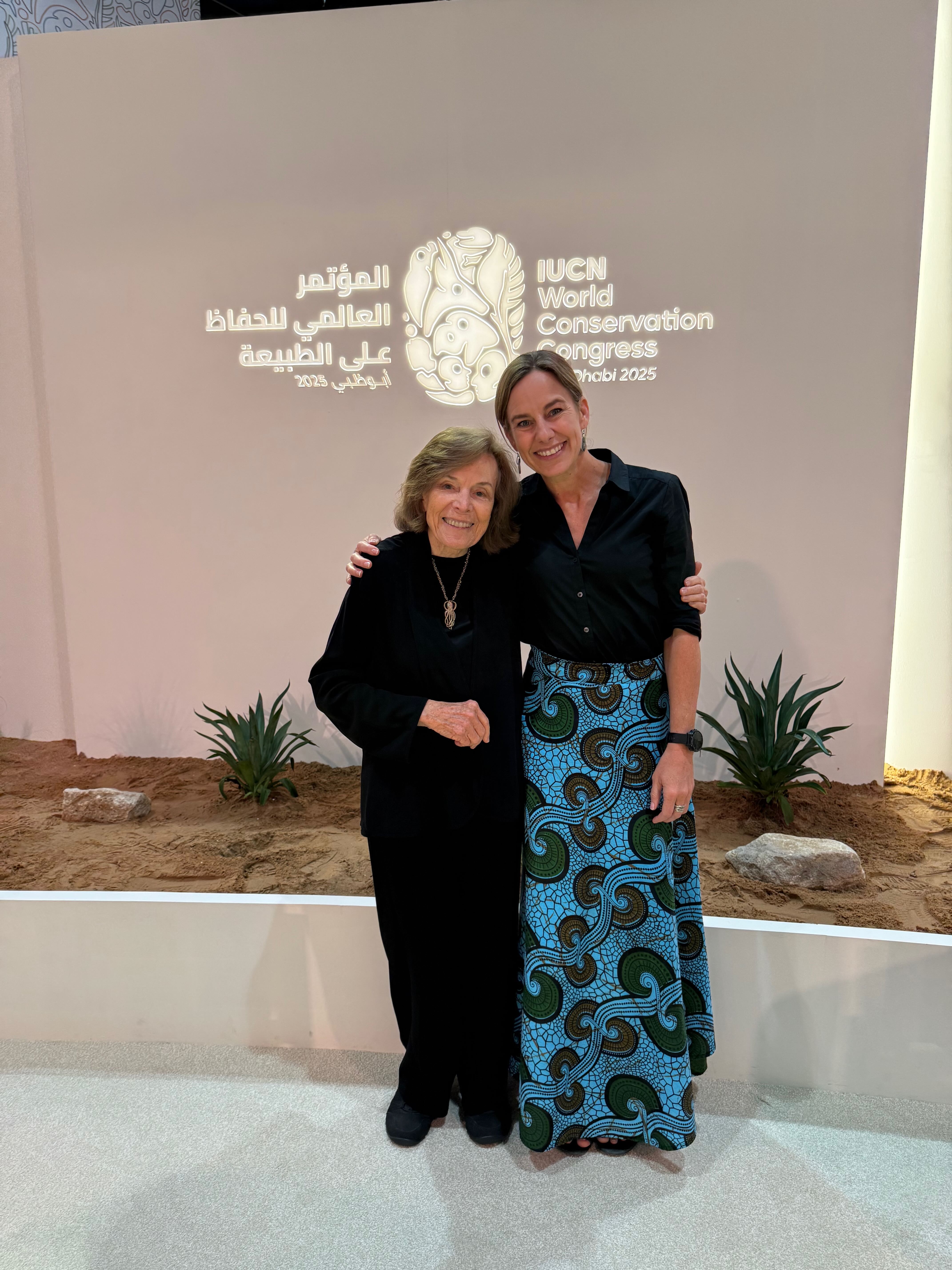 Dr. Tessa Hempson (L) and Dr. Sylvia Earle (R ) at the 2025 IUCN World Conservation Congress. © Tessa Hempson
