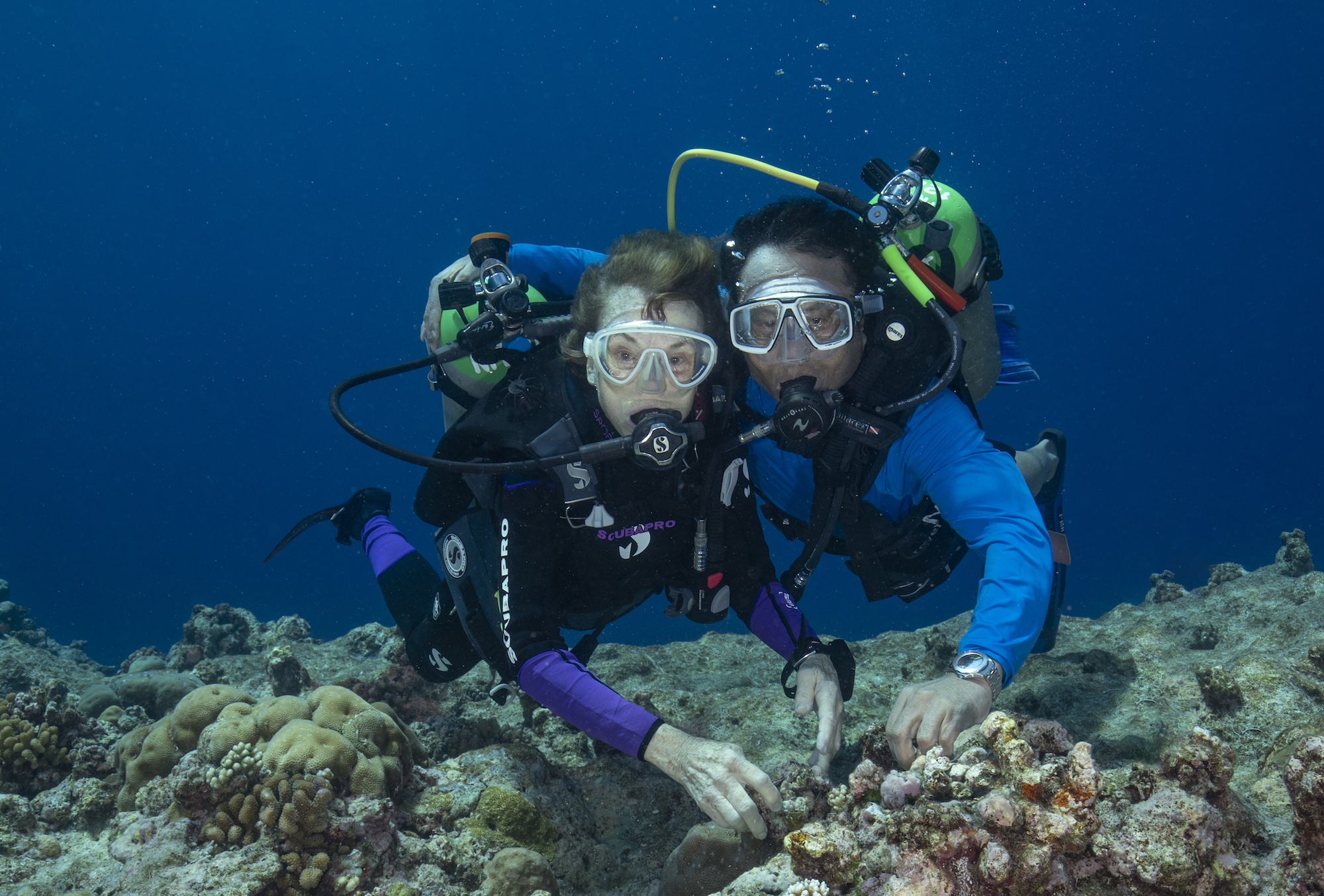 Sylvia Earle and President Tommy Remengasu Jr. Diving. (c) Kip Evans, Mission Blue™